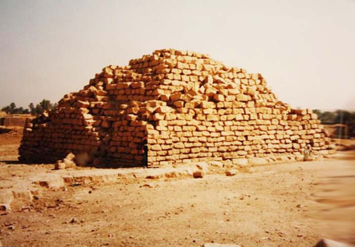 In 1837, Perring and Vyse first investigated the three step Kula Pyramid, which is located near the village of Naga el-Mamariya about six kilometers north of ancient Hierakonpolis. At that time, the ruins stood about twelve meters tall, but is now about ten meters tall and 294 meters square at the base. Perhaps because it is the best preserved of these small pyramids, it was again investigated by Henri Edouard Naville, who made a sounding on its northwest corner, at the end of the the nineteenth century, and again investigated by a Belgian team led by Jean Capart in 1929. Similar to the other small step pyramids, it is built of rough pieces of limestone bound by clay, mud, sand and small chunks of limestone. Its corners are oriented to the four cardinal directions, with its west side paralleling the Nile.