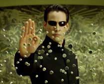 Neo who is possessed with many powers when he enters the Matrix. Neo is a Superman type character now able to fly and stop bullets in mid-air. His flying scenes are quite unlike any "human flying" scenes ever attempted in cinema before. As a messiah, The One, Neo is supposed to save humanity and destroy the Matrix. [Note, Superman was played by George Reeves, later by Christopher Reeve, now we have Keanu Reeves].