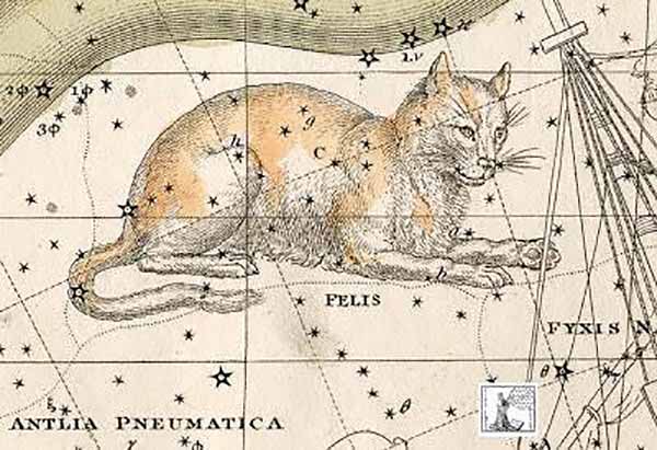 Felis (Latin for cat) was a constellation created by French astronomer Jerome Lalande in 1799. He chose the name partly because, as a cat lover, he felt sorry that there was not yet a cat among the constellations (although there are two lions and a lynx). It was between the constellations of Antlia and Hydra.