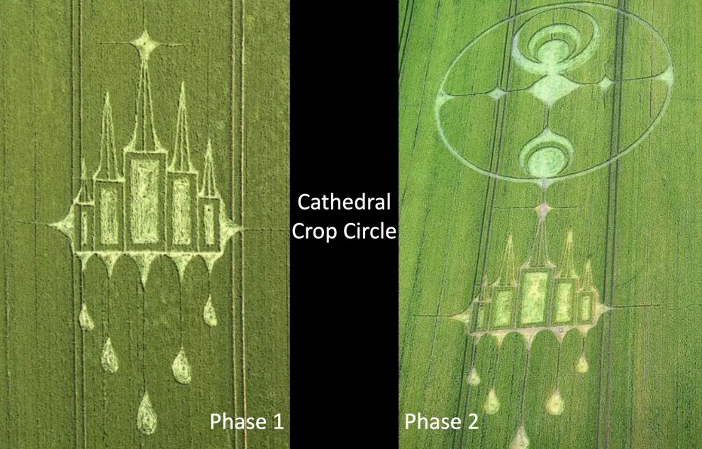 The June 29 saw a highly unusual crop circle appear at Stanton St. Bernard - quickly named The Cathedral and showed a complex of towers and steeples. This formation went on to evolve, twice, into one of the most stunning and enigmatic circles seen in many years. It went became one of the most talked-about circles of the year. se on May 20, 2012, by some researchers according to NBC News.