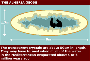 "The next possibility is to drill a hole to fix a window in the geode to show the tourists. Almeria is little town with nice beaches just four kilometres from the mine and is well known to English holidaymakers."