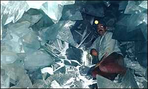 The crystals of gypsum - hydrous calcium sulphate - are about half a metre in length.