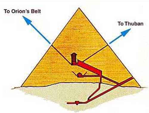 The Pyramids on the Giza Plateau were designed to have one side facing north, with an entrance passage geometrically aligned so that Thuban would be visible at night. At the time the Great Pyramid was built (set in place), one of the shafts aimed toward the star that was then closest to the north celestial pole. The other aimed at the Belt of Orion one of the brightest and most impressive constellations.