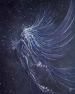 Aquarius is always portrayed with long flowing tresses - often flowing into creation.