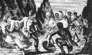 Jason next proceeded to sow the dragon's teeth and plough them in. And soon the crop of armed men sprang up, and, wonderful to relate! no sooner had they reached the surface than they began to brandish their weapons and rush upon Jason. The Greeks trembled for their hero, and even she who had provided him a way of safety and taught him how to use it, Medea herself, grew pale with fear.