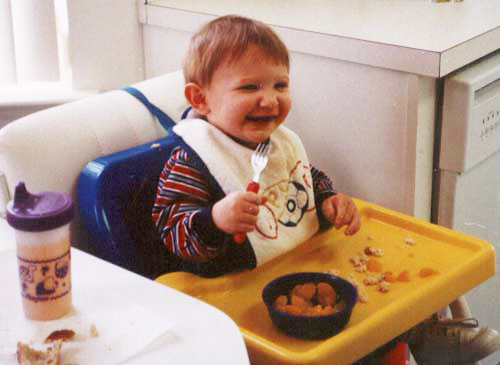 Mommy gave me a fork. I watched what she did with it. Decided to give it a try.