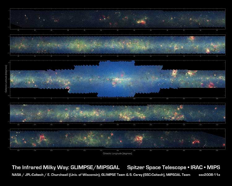 Broad infrared view of our Milky Way Galaxy from the Spitzer Space Telescope created from more than 800,000 frames. This is the most detailed infrared picture of our galaxy to date.