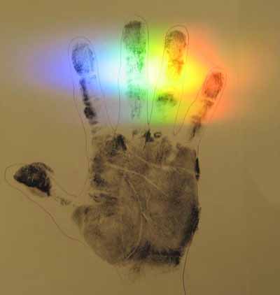 I repeat this twice as each palm print will be different. The second copy will be lighter as I don't use any more ink. Light sections denote changes.