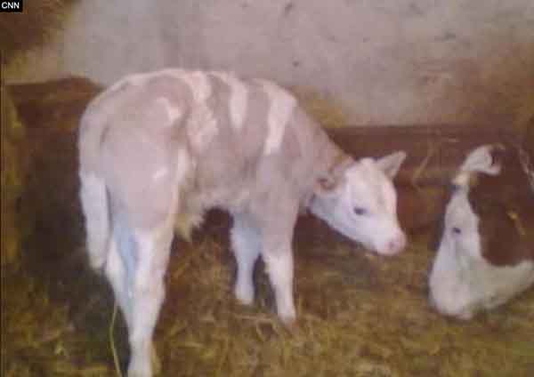 But the Milka calf is not the only cow to attract the world's press of late. Last month six-year-old cow Beba gave birth to four 'miracle' calves in the central Serbian village of Sljivica, IGN reported. Cows usually give birth to just one calf at a time so this case was considered extremely rare. 'After we pulled out the first calf a neighbor told me he thought there were more,' owner Dragan Pavlovic explained. 'Soon the second calf came out, then third, then fourth, all males.'