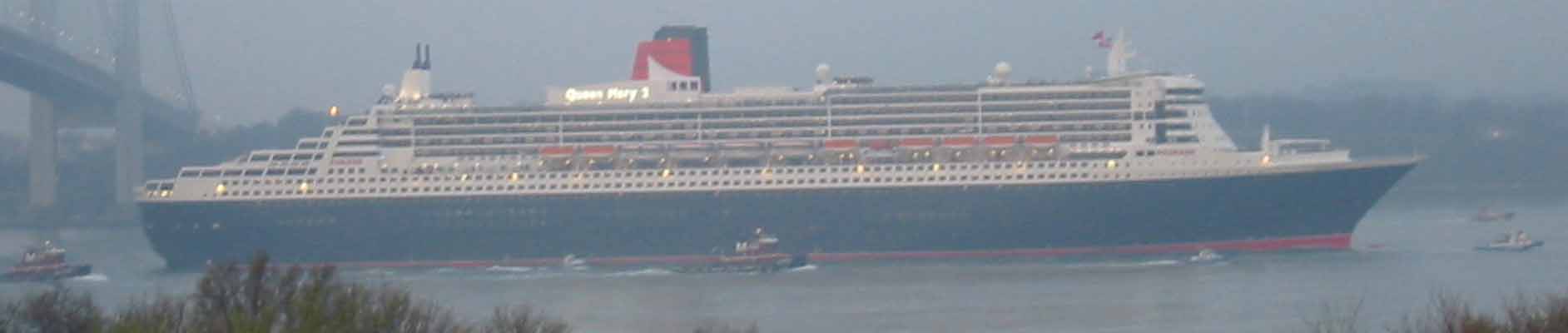 Z shouted, "Get your digital camera...The QM 2 is about to go under the bridge on its maiden voyage."