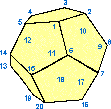 Next I heard the word truncated which means to truncate until the original faces become regular polygons with double the sides. Truncated dodecahedron. This polyhedron can be formed from a dodecahedron by truncating (cutting off) the corners so the pentagon faces become decagons and the corners become triangles. It shares its vertex arrangement with the uniform star polyhedron great icosicosidodecahedron.