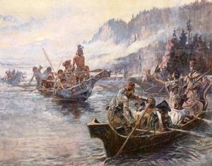 As recorded in the expedition's journals for May 14, 1805, Sacagawea proved crucial to the success of the project when her husband Charbonneau capsized a pirogue the group was using to make its way upriver. Unable to swim, Charbonneau flew into a panic and was unable to help right the situation; Sacagawea therefore calmly went about collecting items which had been lost into the river: instruments, trade items and - perhaps most important, at least to future generations - the water-sodden pages of the journals themselves.