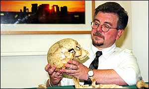 David Miles inspects the severed skull