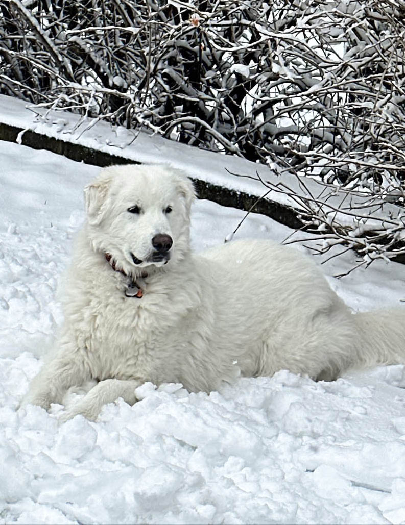 4:00 PM - Meet Duke, my daughter Nikki's Great Pyrenees, surveying the backyard after the blizzard.