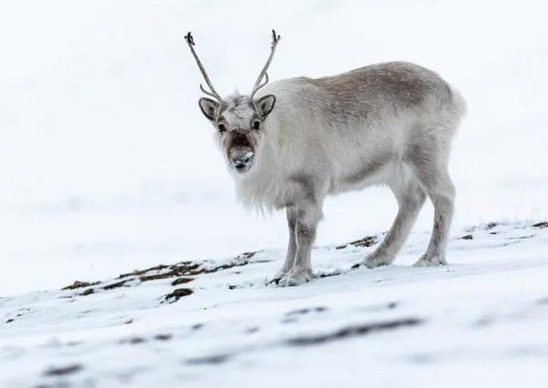 Introducing the Svalbard Reindeer (Rangifer tarandus platyrhynchus), which are around 1.5-1.6 meters (4.9-5.2 feet) long. These cuties are wild, non-domesticated reindeer endemic to the Norwegian Svalbard archipelago in the Arctic Ocean. In winter, they look adorable with thick fluffy light grey or yellow-white fur. In the summer, they look darker, and their fur is less thick. These reindeer have short legs, and relatively small, rounded heads.