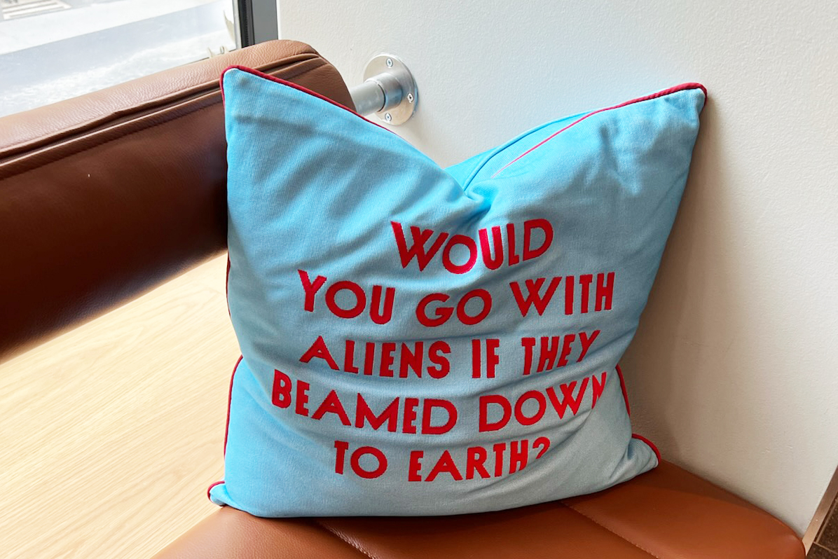 Along the way Nikki found this throw pillow in their hotel gift shop and bought it for me.