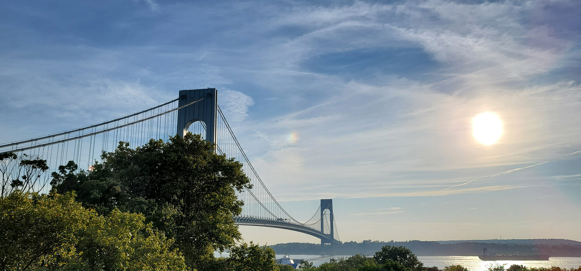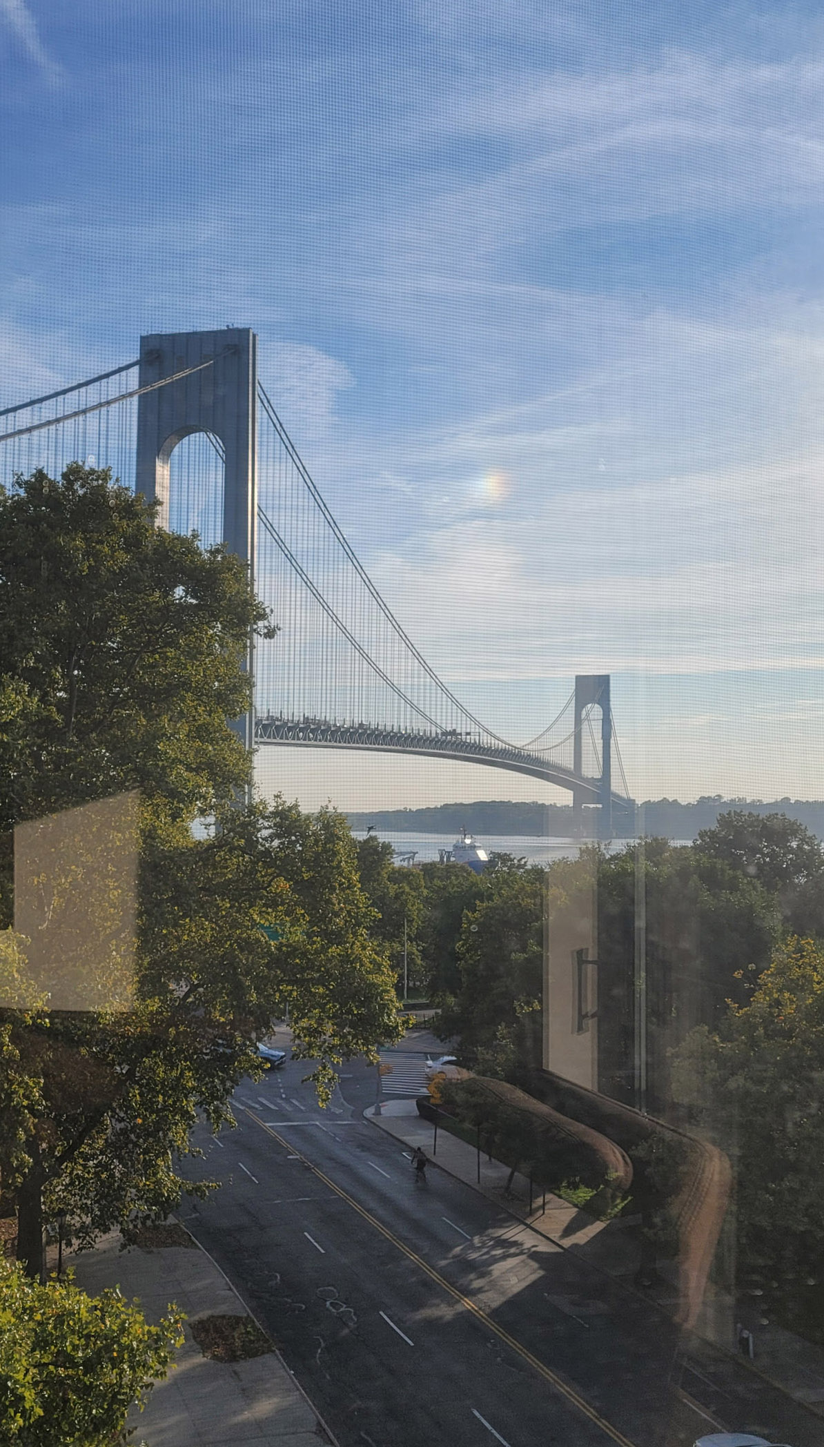 I took the photo above after noticing the small rainbow (sun dog) over the Verrazano Bridge as I stood on my terrace watching the sun set. The sun sometimes appears more orange these days due to Canadian wildfires. The photo reminded me of an article in the news I had posted earlier in the day about Van Gogh's 'The Starry Night' blending physics and math within the painting.