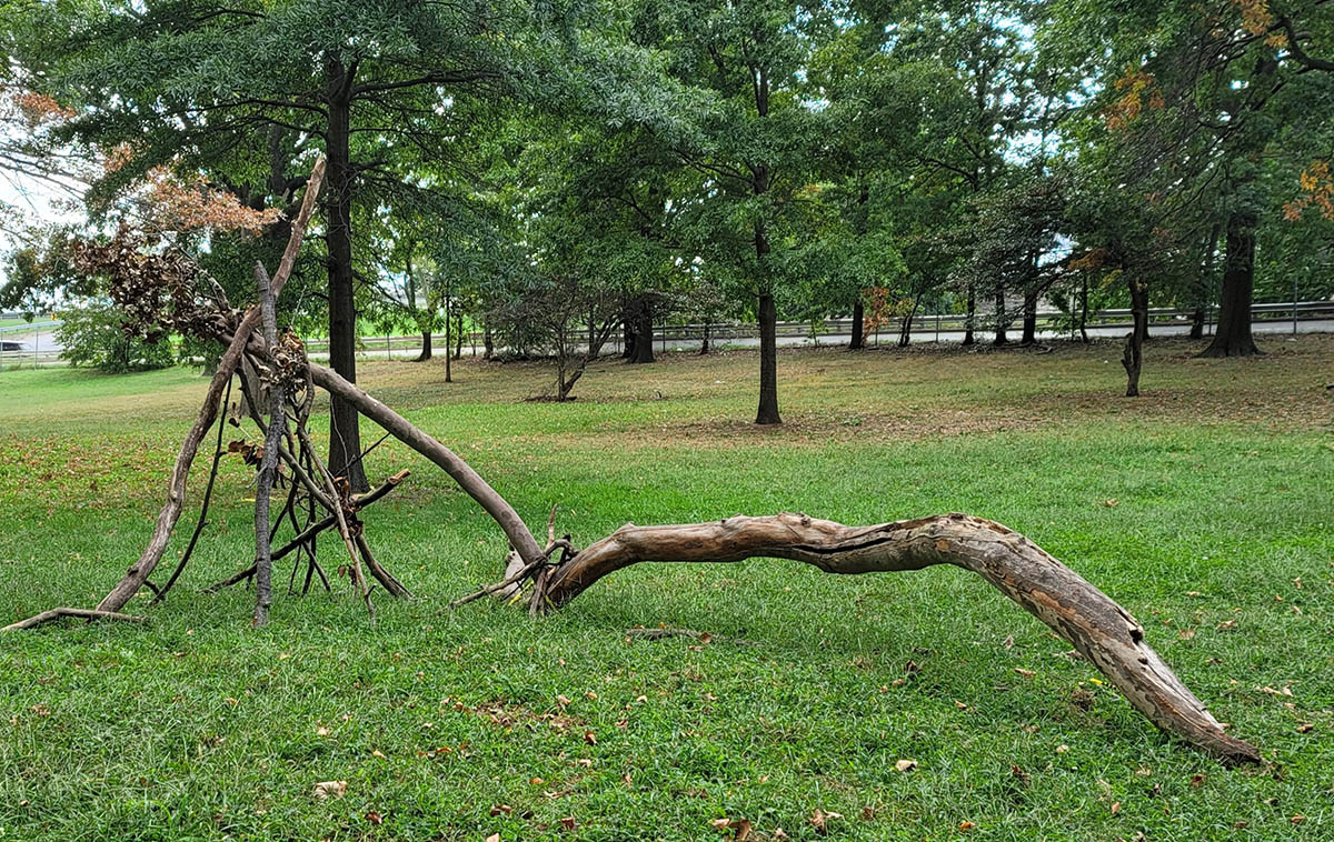 Another view of the branch concept. Do you suppose they wound up this way by accident? Placed there by the Parks Department for pick-up? Native American ritual on the Full Harvest Supermoon Partial Lunar Eclipse this week? A bunch of kids having fun? This is more interesting than some nature sculptures I've seen along the way ... Why? Because it makes you wonder and takes you away from ... whatever.