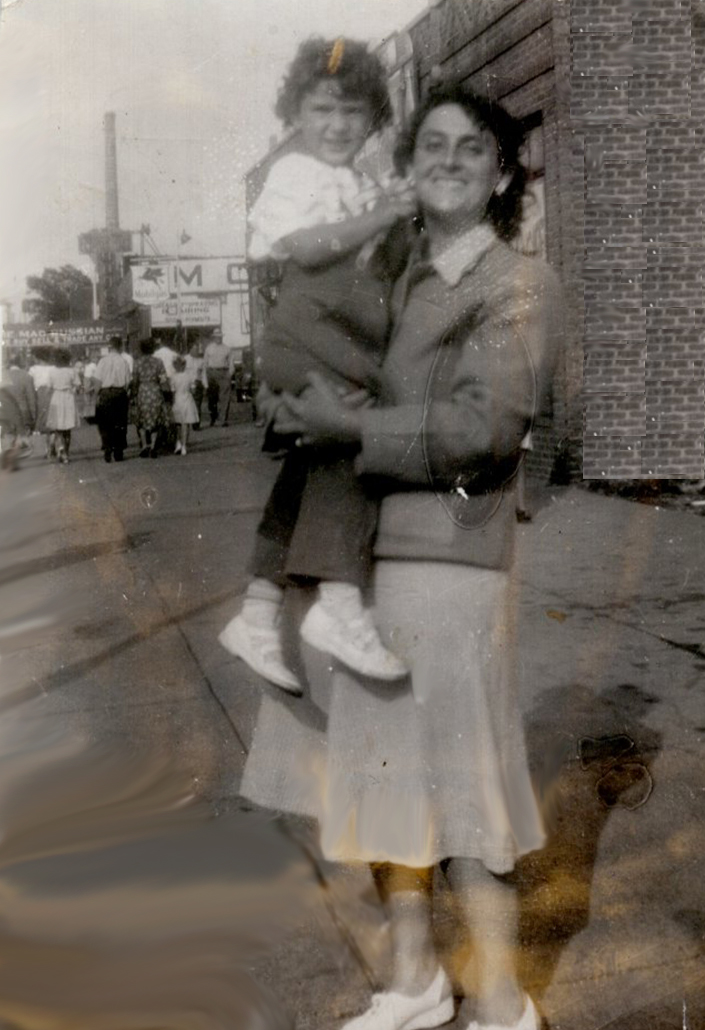 I really have no memory of it so I'm not sure but then there's all the strange things in the photo with my mom. There's a strange light over my head. Twirling lights around mom's legs which always speak to me of time travel. Then there's the glittering light on mom's jacket sleeve, others behind me, and more in the photo.