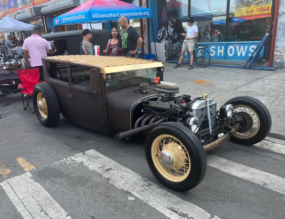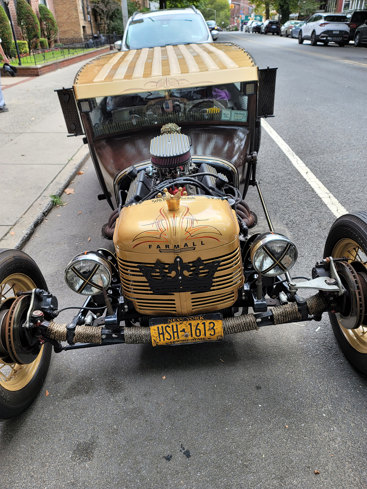 He and a friend built it and added their own touches such as a bejeweled skull as a hood ornament.