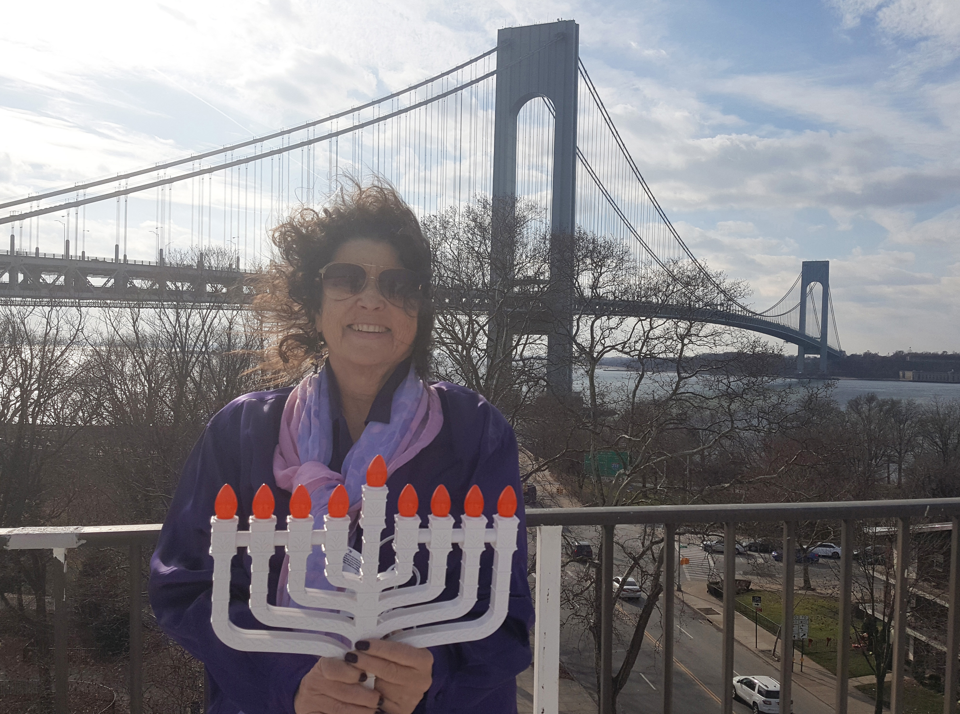 Shhh ... For a few minutes yesterday it was me!! You might say I 'borrowed' it from the lobby -> then snuck up on the roof to take pics with the Verrazano Bridge as the backdrop. Suddenly a whirlwind swirled around me ... caught on camera by my accomplice who prefers to remain anonymous.