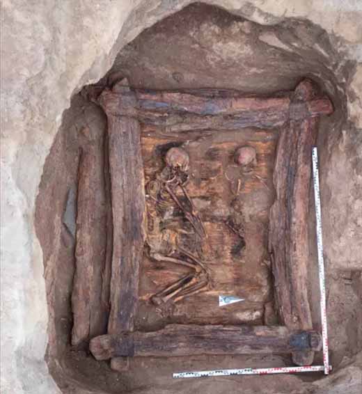 The ancient tomb holds the remains of five people, including those of a woman and toddler who were buried with an array of grave goods, such as a crescent moon-shaped pendant, bronze mirror and gold earrings. The mounds were made by the Scythians - a term used to describe culturally-related nomadic groups that lived on the steppes between the Black Sea and China from about 800 B.C. to about A.D. 300.