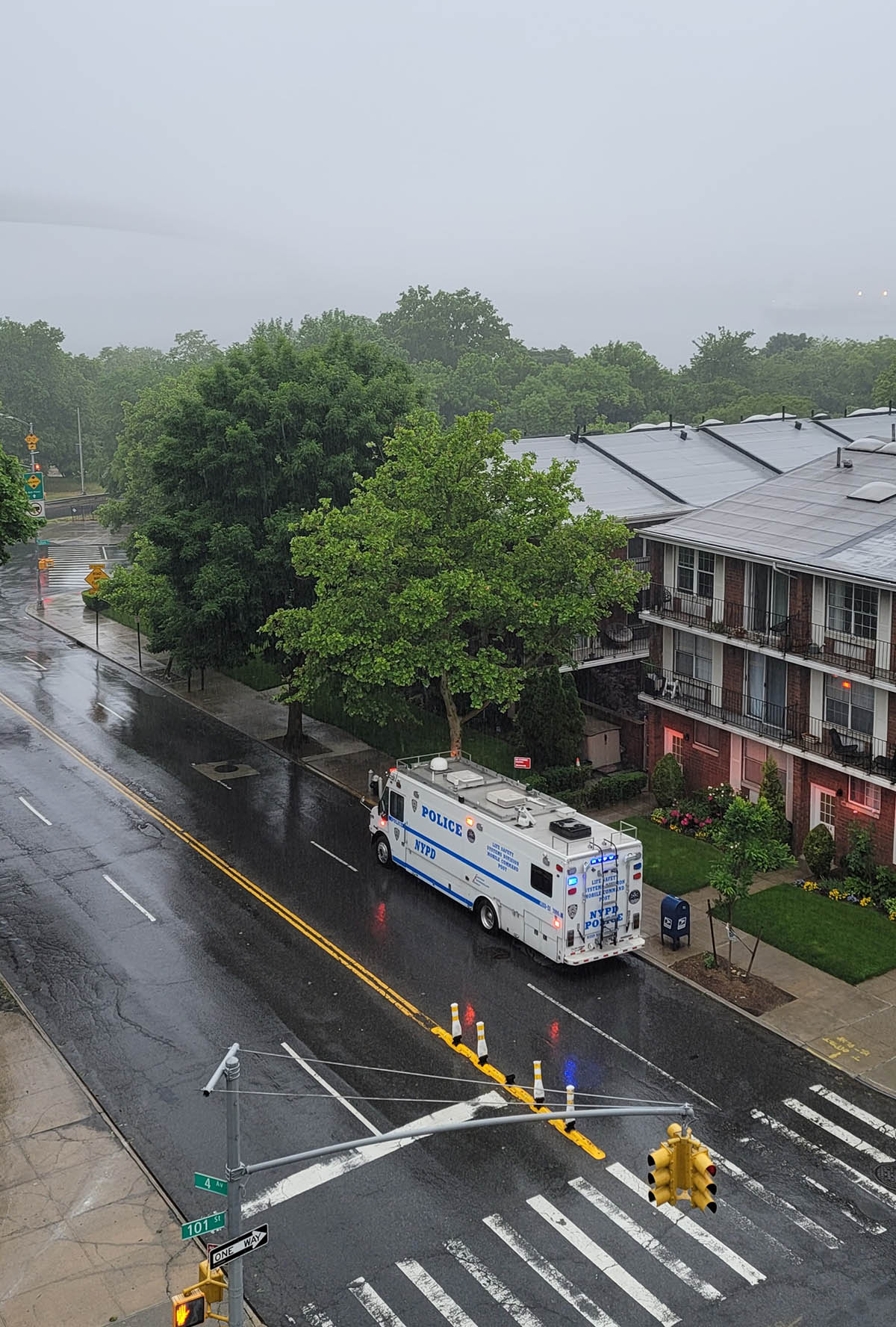 7:00 am - A single police van sits outside the park where normally on Memorial Day preparations would be underway for the Memorial Day Parade and Festivities. Climate change has put a damper on Memorial Day plans for millions this year as each day we read about the devastation and destruction tornadoes and storms have brought as they sweep across the country. At least 19 killed in tornado-spawning storms sweeping central US.