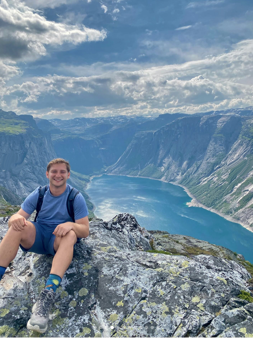 Grandson Mike catches a rainbow on a recent trip to the Scandinavia fjords