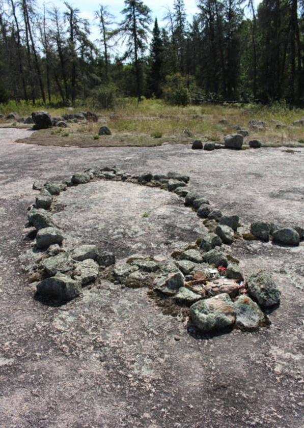 Presently, many Ojibwe or Anishinaabe ceremonies in North America involve the making of turtle shaped fire pits for sacred fires. In some instances, rocks are aligned near the entrance and fire of sweat lodge ceremonies that symbolize the Moon, the Sun and other things. Rock piles are still made to mark trails and important locations. A large turtle petroform of piled up boulders was recently made in the Whiteshell Park area of Manitoba.