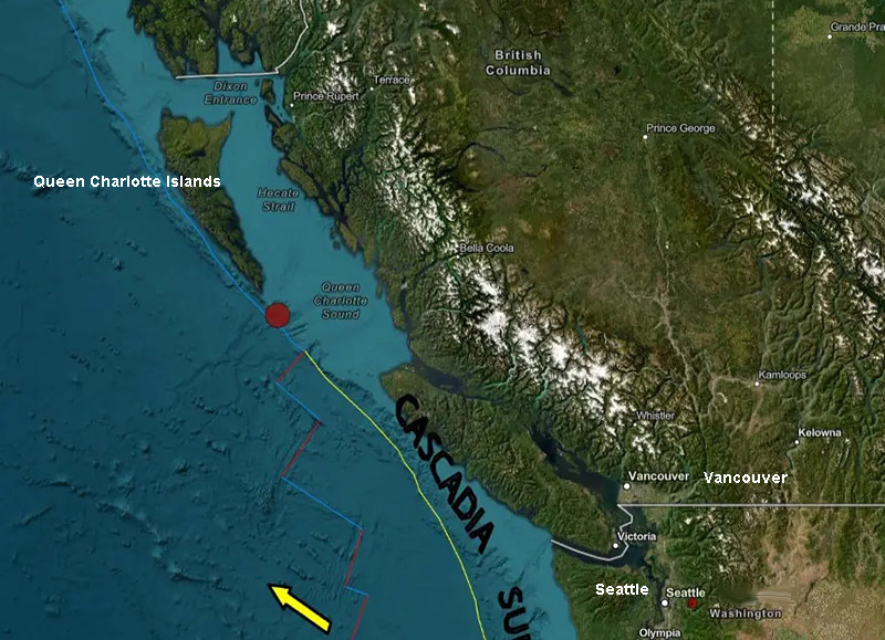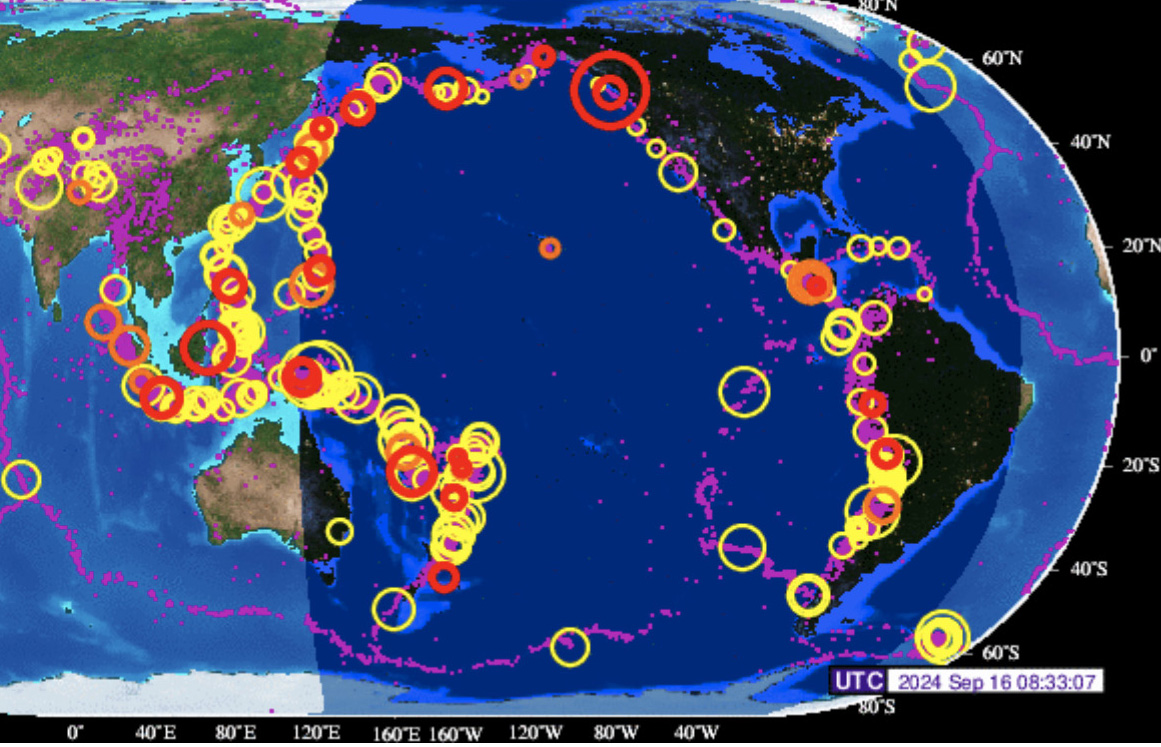 About the client I read before all of this started ... she lives south of Seattle on Puget Sound. I had mentioned ... an upcoming earthquake not that far from Vancouver that could shake her area as the Pacific Plate continues to break up ... then this happened. A strong and shallow earthquake registered by the USGS as M6.5 hit the Queen Charlotte Islands region, British Columbia, Canada at 22:22 UTC on September 15, 2024.