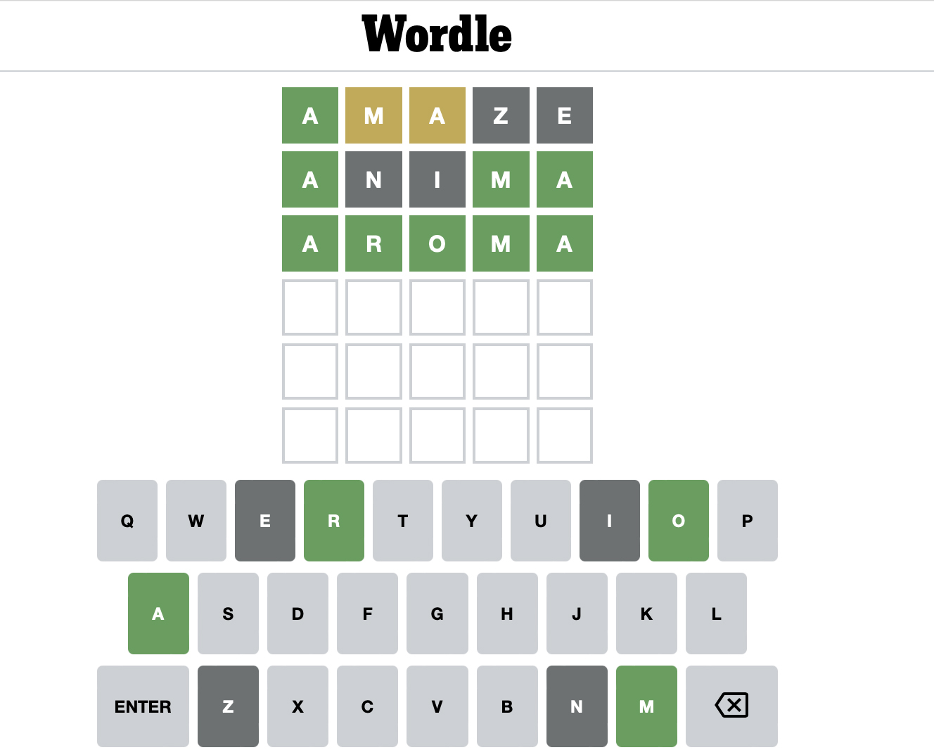 I played Wordle Tuesday for the first time and got the word on the third try.
