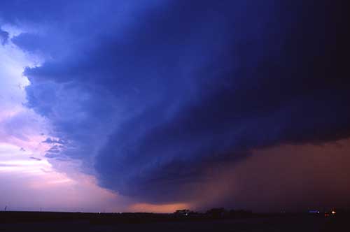 A shelf cloud is a low, horizontal wedge-shaped arcus cloud, associated with a thunderstorm gust front (or occasionally with a cold front, even in the absence of thunderstorms). Unlike a roll cloud, a shelf cloud is attached to the base of the parent cloud above it (usually a thunderstorm). Rising cloud motion often can be seen in the leading (outer) part of the shelf cloud, while the underside often appears turbulent and wind-torn.