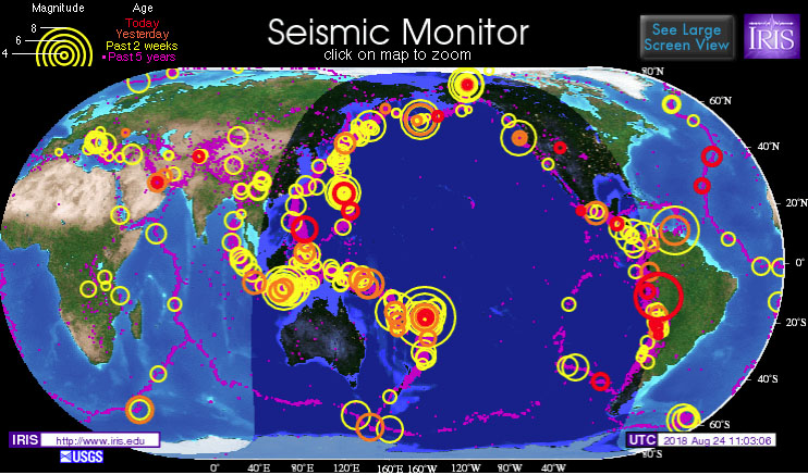 It seems the Pacific Plate is on the move again - north, south, east, and west. Its activity should not be ignored - just monitored when you see a big red circle on the map at the top of this page.