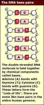 The human genetic code, or genome, consists of three billion pairs of chemicals known as bases. Given the letters A, T, C and G, they form the central part of the DNA molecules that inhabit nearly all our cells. All human DNA in the nucleus of those cells is coiled and folded into structures called chromosomes.