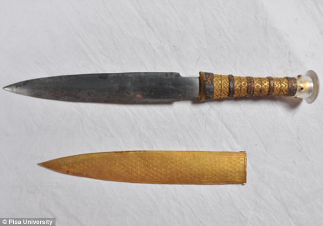 King Tut was buried with a dagger made of an iron that literally came from space, says a new study into the composition of the iron blade from the sarcophagus of the boy king. Using non-invasive, portable X-ray fluorescence spectrometry, a team of Italian and Egyptian researchers confirmed that the iron of the dagger placed on the right thigh of King Tut's mummified body a has meteoric origin.