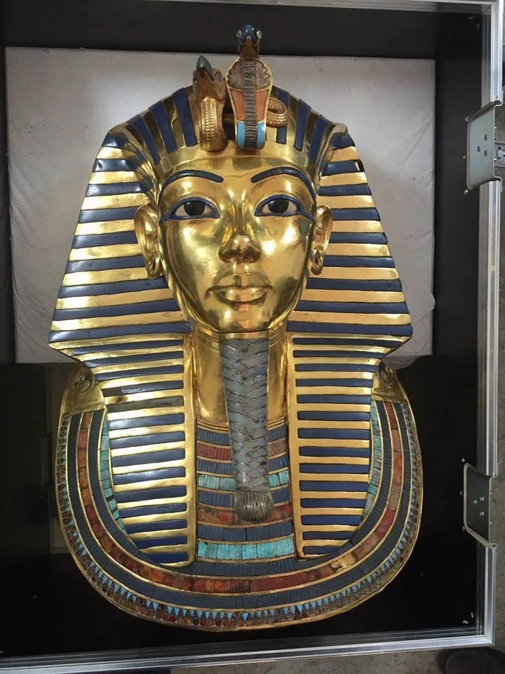 The imperial goatee on King Tutankhamun's golden burial mask is back in business after scientists reattached it with beeswax, according to the Egyptian Ministry of Antiquities. The more than 3,300-year-old mask was damaged in August 2014 when the beard accidentally fell off during a routine cleaning. Staff workers at Cairo's Egyptian Museum mistakenly reattached it with epoxy glue, leaving scratch marks on the famous artifact after they used a spatula to wipe off the excess glue. After a nine-week restoration, the mask has returned to public display at the museum.
