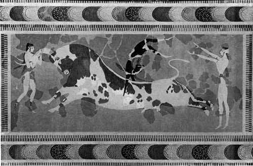 When the archaeologists uncovered the ruins at Knossos, they found the image above of young men jumping over a bull. Perhaps this was the origin of the myth of the Minotaur.