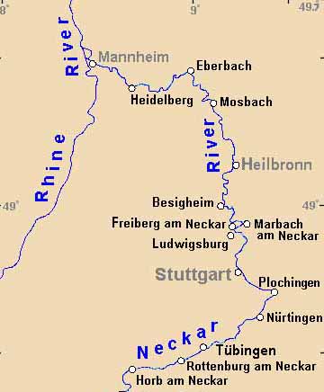Pat and I took a relaxing three hour cruise along the Neckar River - a major tributary of the River Rhine, which it joins at Mannheim. Rising in the Black Forest, it flows through a steep valley in the Odenwald hills and passes through Tubingen, Nurtingen, Esslingen, Stuttgart, and Heidelberg. The total length of the Neckar from its source near Villingen-Schwenningen to the Rhine is 367 km. The Neckar is navigable for cargo ships up to the river port of Plochingen, about 200 km upstream from Mannheim.
