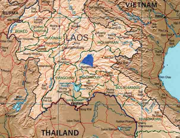 An American bomb damaged the cave during the Vietnam War, when the Pathet Lao used it as a stronghold - the surrounding area still has trench systems and bomb craters. The land is littered with metal shrapnel. The town of Xieng Khouang was destroyed during the fighting between the Pathet Lao and American backed anti-communist troops. A new town was built in the mid 1970s, known to foreigners as Phonsavan.