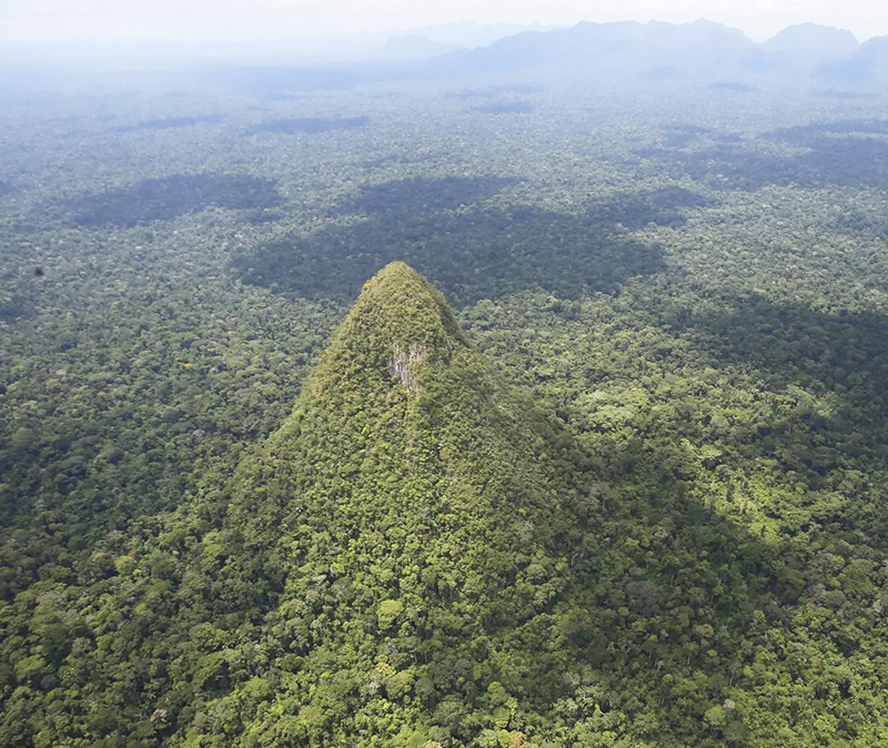 Cerro El Cono is a solitary, pyramidal hill in the Peruvian Amazon rainforest whose origins remain mysterious and that holds spiritual significance for Indigenous people. Cerro El Cono is a 1,310-foot-tall (400 meters), pyramid-like formation in the Amazon rainforest. It rises steeply from the relatively flat jungle landscape of eastern Peru, making it visible from as far west as the Andes - 250 miles (400 kilometers) away - on a clear day.