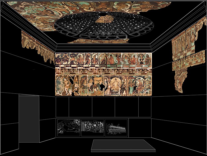 A Tang Dynasty inscription records that the first cave in the Mogao Grottoes was made in 366 A.D. The United Nations Educational, Scientific and Cultural Organization (UNESCO) listed the Mogao Grottoes on the World Heritage List in 1987. According to archaeologists, it is the greatest and most consummate repository of Buddhist art in the world. Despite erosion and man-made destruction, the 492 caves are well preserved, with frescoes covering an area of 45,000 square metres, more than 2,000 colored sculptured figures and five wooden eaves overhanging the caves.