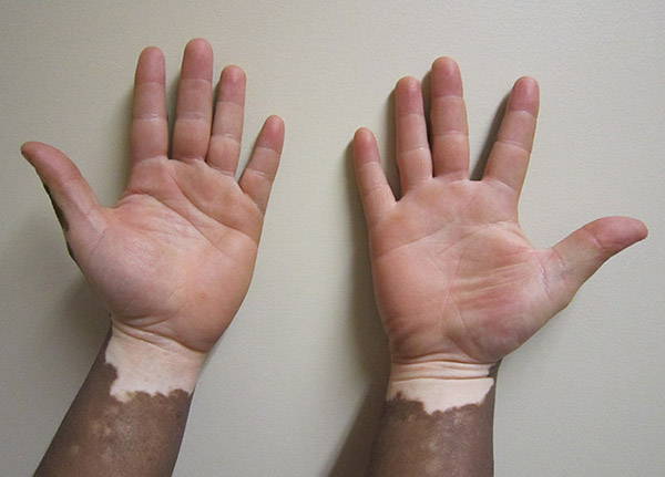 Vitiligo is a condition that causes depigmentation of parts of the skin. It occurs when melanocytes, the cells responsible for skin pigmentation, die or are unable to function. The cause of vitiligo is unknown, but research suggests that it may arise from autoimmune, genetic, oxidative stress, neural, or viral causes. The incidence worldwide is less than 1%. There are two main types of vitiligo: idiopathic and chemical. Most vitiligo is idiopathic; however, in cases where it is triggered by skin bleaching or other substances, it is said to be chemical. Read more ...